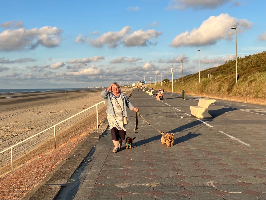 Vel, dagen endte nå godt. Vi fant en campingplass utenfor Dunkerque som hadde plass til oss. Her er det svømmebasseng med rutsjebane og sjørøverskute m.m. og er slik plass som vi pleier å frykte verre enn døden, men nå var det snakk om force majeure og kun for en natt så det var bare å la det stå til. Her er fin strandpromenade og stor strand som Albert kunne løpt løs på men Maggie ville bare hjem igjen så det ble ikke noe av. Hun er så utslitt stakkar. Sitter og peser hele tiden når vi kjører. Hun har i alle år vært stresset når vi kjører men nå er det så gale at vi vurderer å gå til veterinær i England å få noe beroligende om det finnes. Men dette er nå liksom den siste kjøredagen for oss på en stund. Det er 45 minutter til Calais og så 20 minutter til Canterbury som er planlagt som første stopp i England.