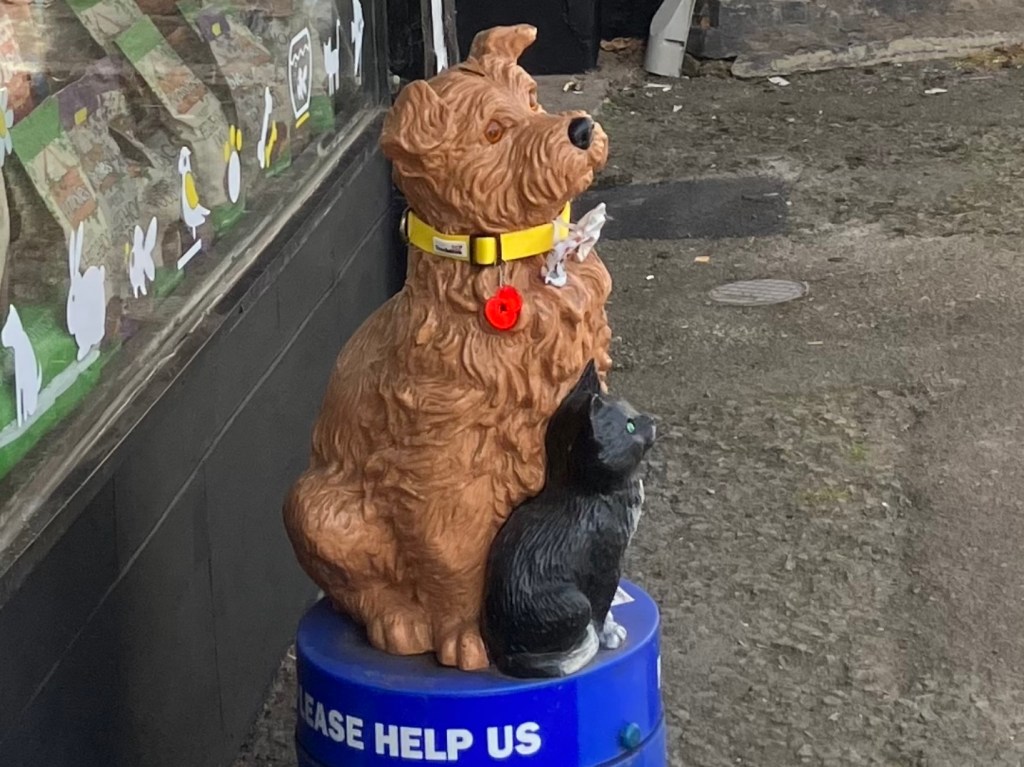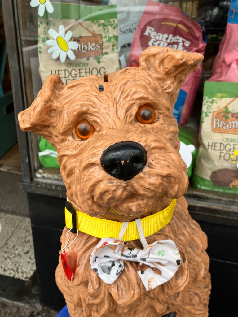 I alle år når vi har reist til England har vi alltid kommet hjem med en hel haug med mynter. Nå bruker vi jo bare kontanter i «nødstilfelle» så nå har vi ikke så mye det problemet lenger. Så denne gangen tok vi med oss en pose med mynter som sikkert veide et kilo for å finne en veledig bøsse vi kunne tømme det i. Og her i Dulverton fant vi jo denne RSPCA bøssen som vi gladelig kunne gi til.