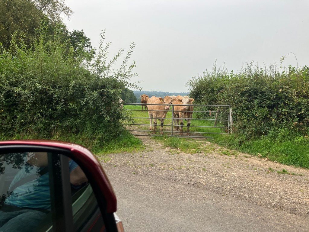 Det er meldt 27 grader i dag og vi skal ut på tur igjen. Det er jo greit egentlig for vi har jo aircondition i bilen. Men før vi kom så langt ble vi ganske svett av å pakke sammen alt utstyret vi hadde montert og spredd oss rundt med. Men enda svettere ble vi da vi begynte å kjøre for den tussete damen som bestemmer hvor vi skal kjøre ledet oss igjen ut på ville veier. Smale landeveier med møteplasser, i dag måtte vi faktisk trå til å rygge for å finne et sted å passere. Og vi som trodde vi hadde vært gjennom det verste TIL Dulverton oppdaget nå at det var like ille å dra FRA Dulverton !