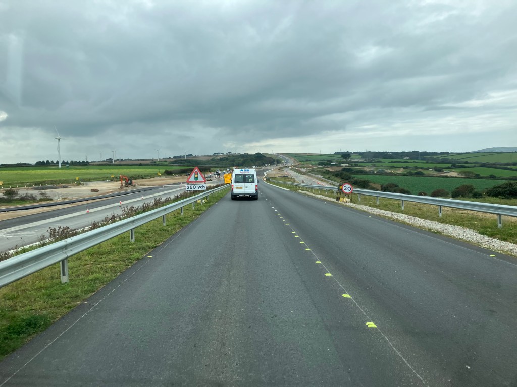 Det vi ble imponert over var de flotte gråsteinsmurene som blir satt opp langs den nye veien.Ser ut som det blir dumpet en haug med stein og så kommer «noen» og murer flotte tørre gråsteinsmurer. Kanskje er det Kong Charles som har bestemt det, han er jo så miljøbevisst. I alle år han var prins av Wales var han også hertug av Cornwall og Camilla ville bli omtalt som hertuginnen av Cornwall – ikke prinsessen av Wales som var Dianas tittel. Nå er det prins William som er hertug av Cornwall og som får inntekten (20 mill pund) fra gårdene og eiendommene som hertugdømmet eier. Dette går rett inn som privat inntekt til hertugen og skulle nå holde til en ekstra slant til designerkjoler m.m. til hertuginne Kate.