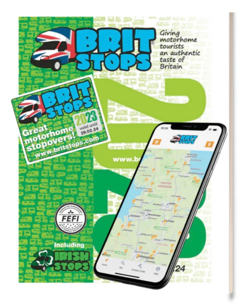 Vi har meldt oss inn i noe som heter Brit Stops. Som medlem her får du tilbud om å overnatte på puber,gårder,små hotell og andre steder som har litt parkering til overs. Noen av stedene har service som vann og do-tømming f.eks. men de fleste steder er det kun en gratis parkeringsplass. Det er da liksom «forventet» at du spiser i restauranten eller kjøper noen av varene på gården.(i Frankrike og Italia – som har en lignende ordning – er dette ofte vin !)