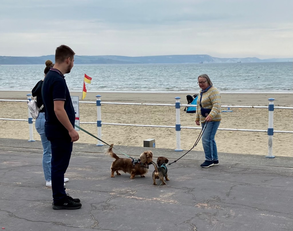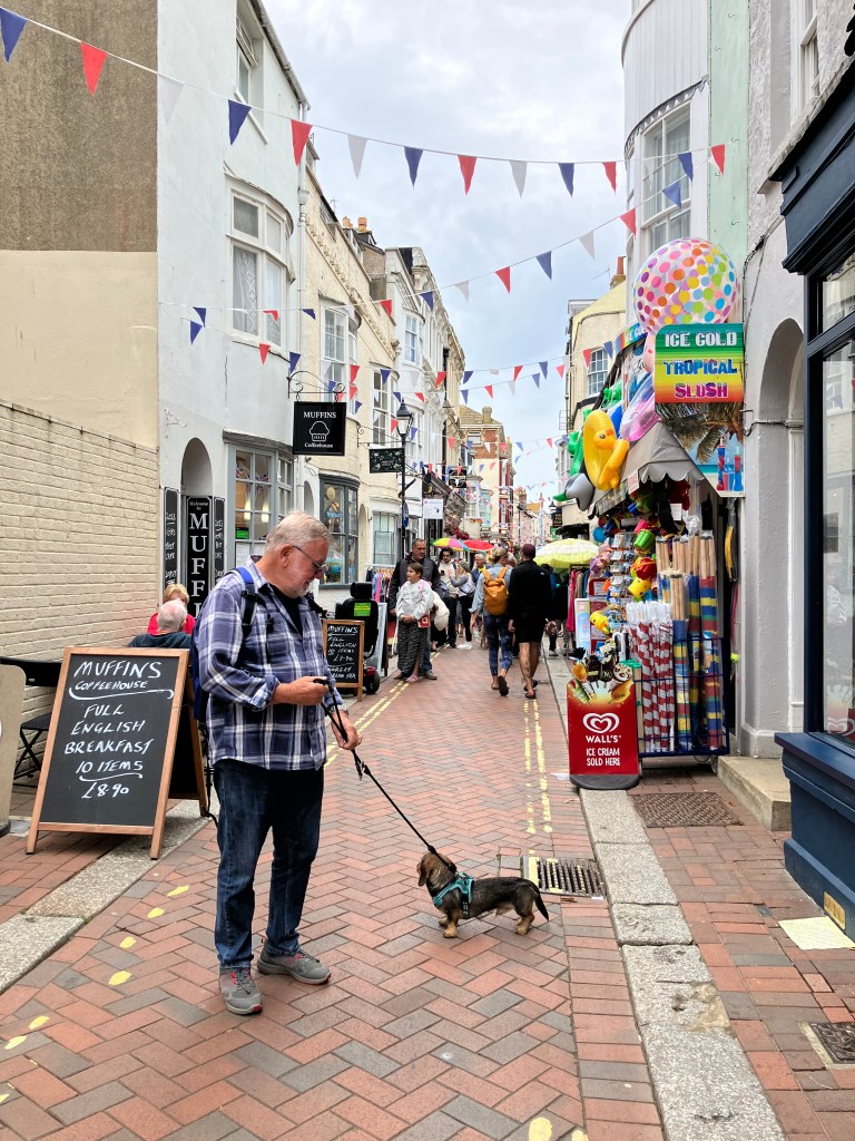 Lørdag og masse folk i byen. Og masse hunder. Halvparten av alle mennesker vi så hadde hund – mange hadde både 3 og 4 og de fleste av butikkene hadde du lov å ta dem med inn, det var bare å sjekke om det var klistrelapp på døren.