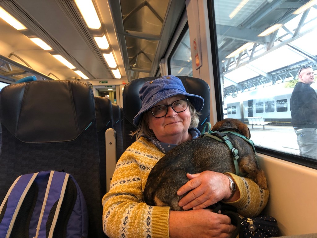 Veldig trøttende dag for en liten hund. Sovnet på toget hjem. Og vannhullet til dykkerne ? Ja den eksisterer fremdeles !