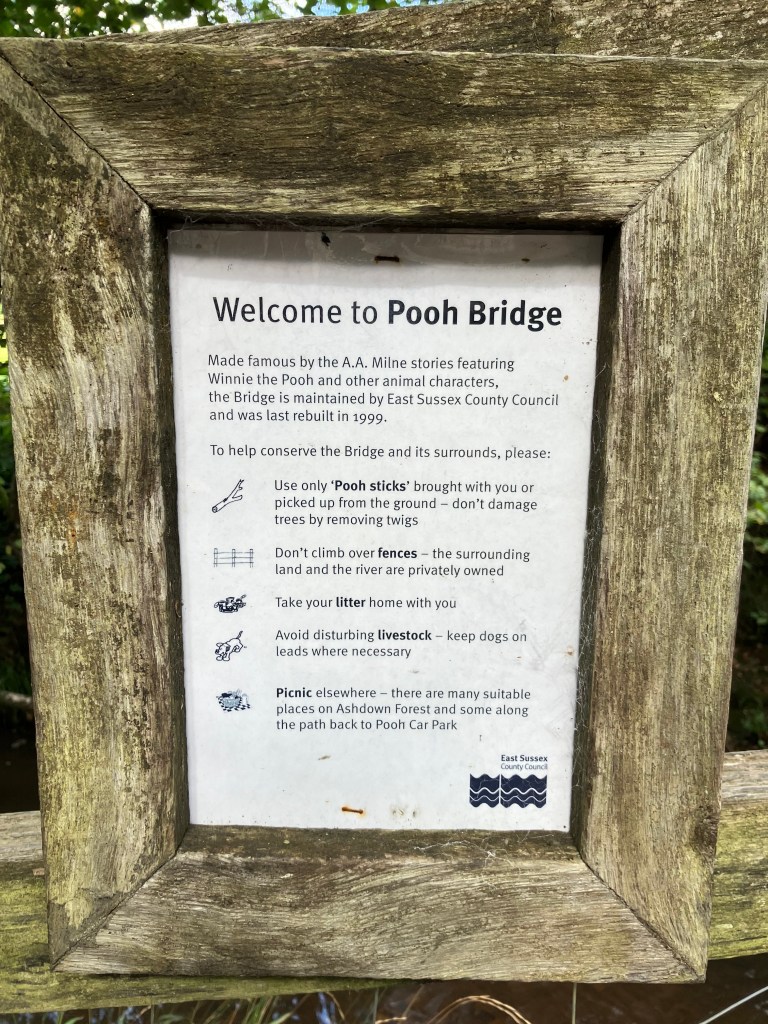 Men vi fant da Pooh Bridge. Flere av de andre som kom hadde med seg pinner som de kastet men vi syntes vel egentlig vi var litt for gammel til denslags.