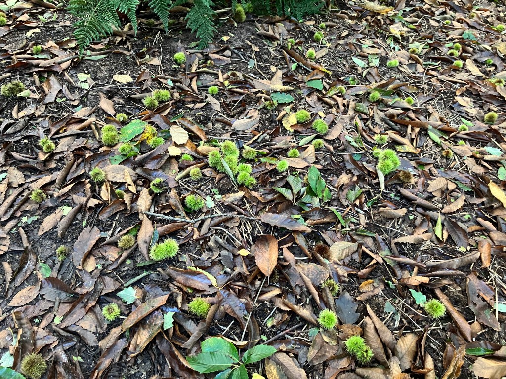 Om ikke Ole Brum hadde fått nok honning kunne han nå om høsten levd på kastanjer. Det var fullt av dem på bakken og vi måtte passe på at hundene ikke trakket på dem for det ytre skallet er akkurat som pinnsvin.