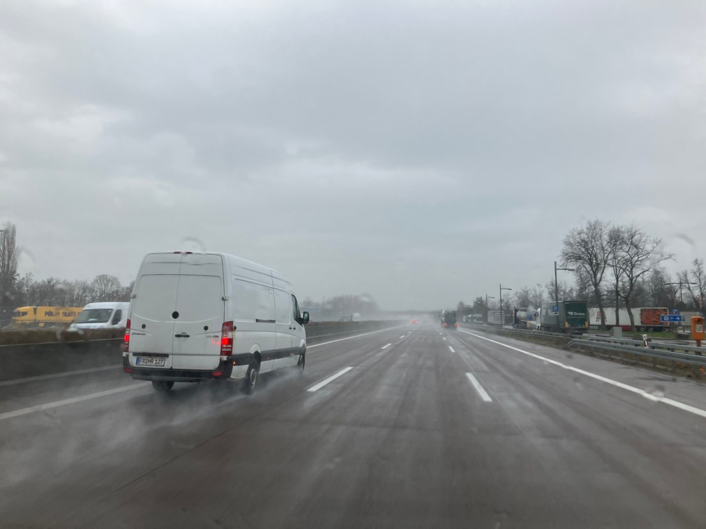 Ikke spesielt lystelig på motorveien i regnet men det var den minste av våre bekymringer skulle det vise seg.