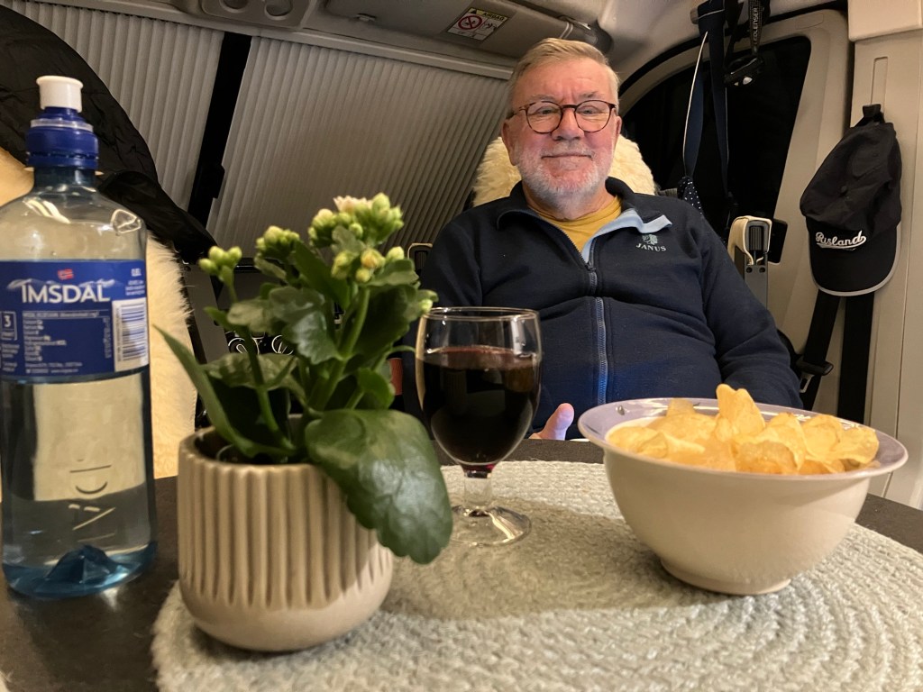 Så da var det bare å ankre opp og ta ankerdrammen med litt økologisk potetgull.