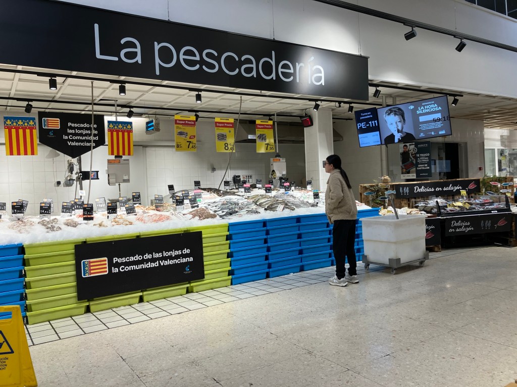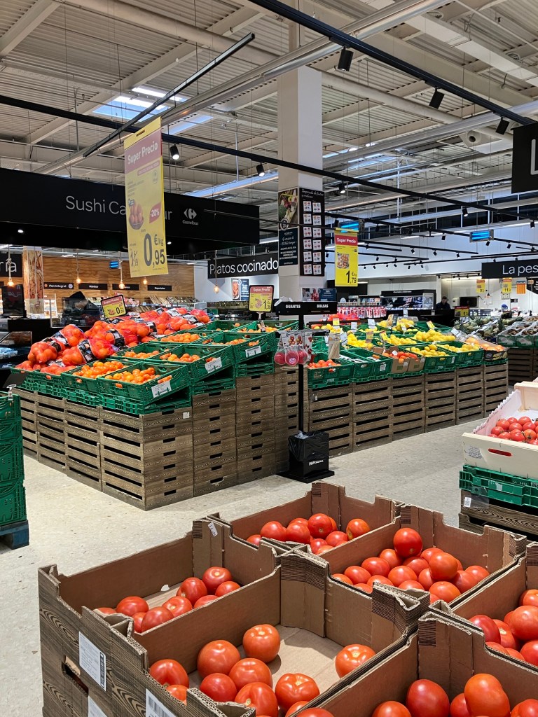 Nå begynte frustrasjonen å gjøre seg gjeldende, og med lavt blodsukker i tillegg fant vi ut vi trengte en pause og også handle litt, så vi havnet på et spansk Carrefour som vi har vært på før.