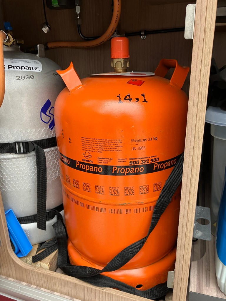 Så var det bare å gi seg på hjemtur og stoppe ved en Repsol i utkanten av Benicassim og forhøre oss der. OG UNDER OVER ALLE UNDER: her fikk vi skrive kontrakt, vise frem passet og fikk oss en spansk propanflaske. Det var også litt flaks for på to av stasjonene hadde de bare butan som ikke vi kan bruke.