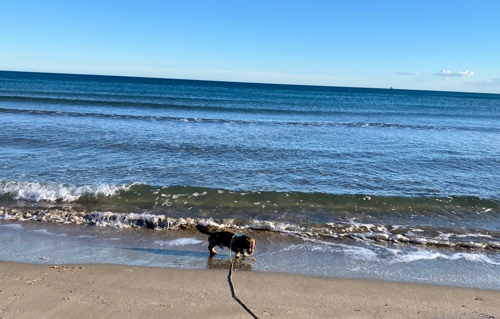 Det blåste litt da Albert og Mona var på stranden tidlig på kvelden men vinden var da fremdeles relativt behagelig.