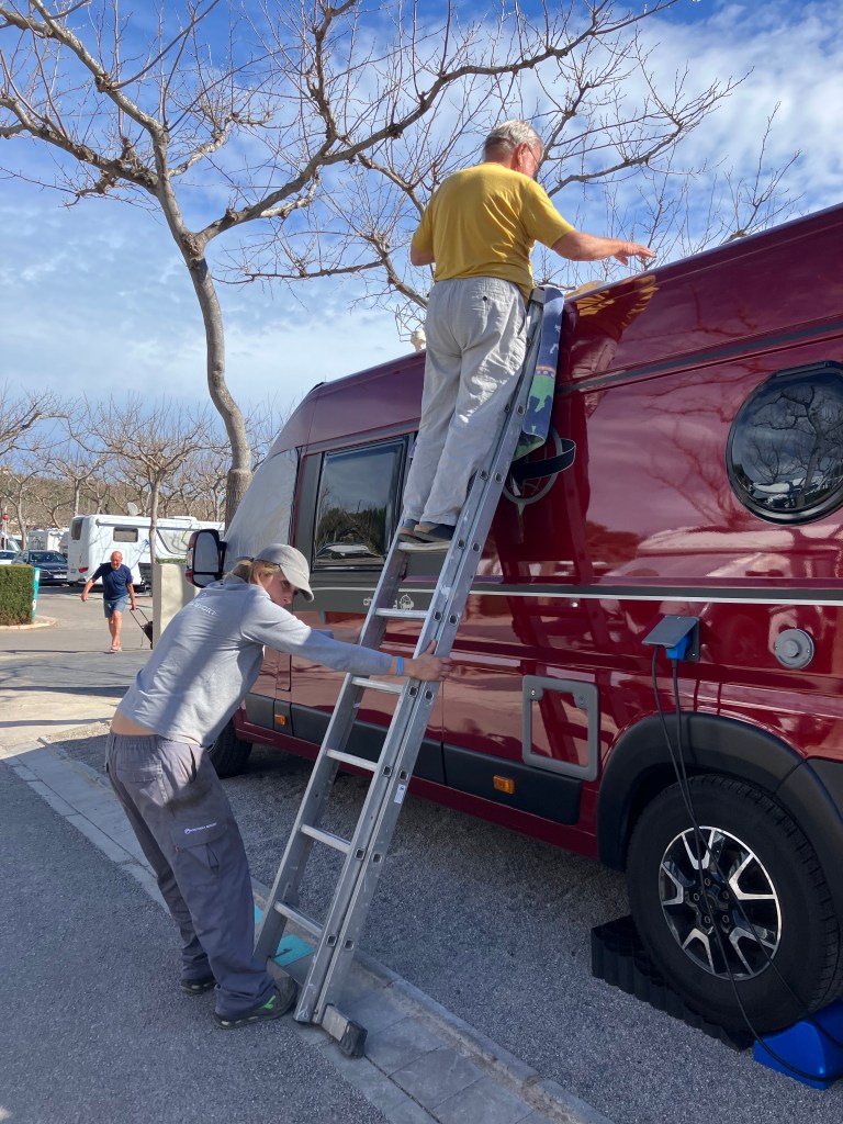 Etter frokost kontaktet vi Jose i Re-caravan som var her og fikset doet vårt for et par uker siden og han kan heldigvis hjelpe oss denne gangen også. Han har bestilt ny luke som skal ankomme Valencia på fredag og så kan han komme her sannsynligvis på mandag og montere den.