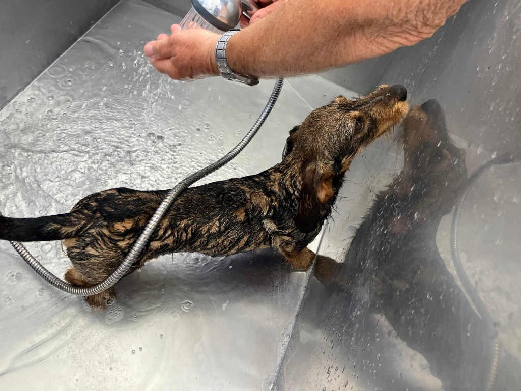Ikke lett alltid å være bobil-hund i Spania. Det er tørt og pelsen blir full av sand og støv.