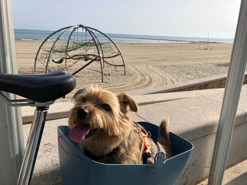 Vi har ofte lurt på hvorfor dette skiltet står ved stranden. Vi trodde kanskje det betød Forbudt for Sykler, men det var jo alltid mange som sykler på promenaden så vi skjønte det ikke helt. Vel, helt til siste gang vi var på Voramar for forfriskninger, for da sto nemlig lokalpolitiet på promenaden og kommanderte folk av syklene sine. Vi så ikke at noe fikk bot, men ifølge en spansk jente vi snakket med gjorde de det for noen dager siden. En hundeeier fikk også beskjed om å få bikkjen opp fra stranden. Det er jo kjekt å se at noen sørger for at regler blir overholdt.