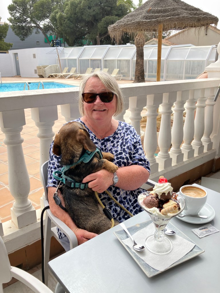 Mona synes hun har vært flink å lage middag også, har hatt kyllinggryte og flere middager med sjøabbor med brokkoli-ris – men siste kvelden spiste vi i Bonterra-restauranten. 3 retters middag (uten drikke) koster nå 15,90 euro. Tenk da vi kom her første gang var det 10 euro inkl. en flaske med vin !