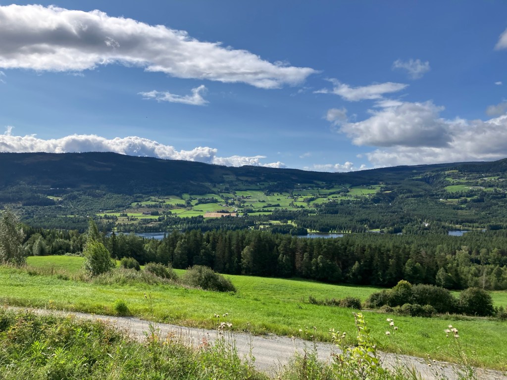 Skogbruk og jordbruk, modne åkrer og sauer i veien. Kan ikke være lenge før det er tid for skuronna nå.