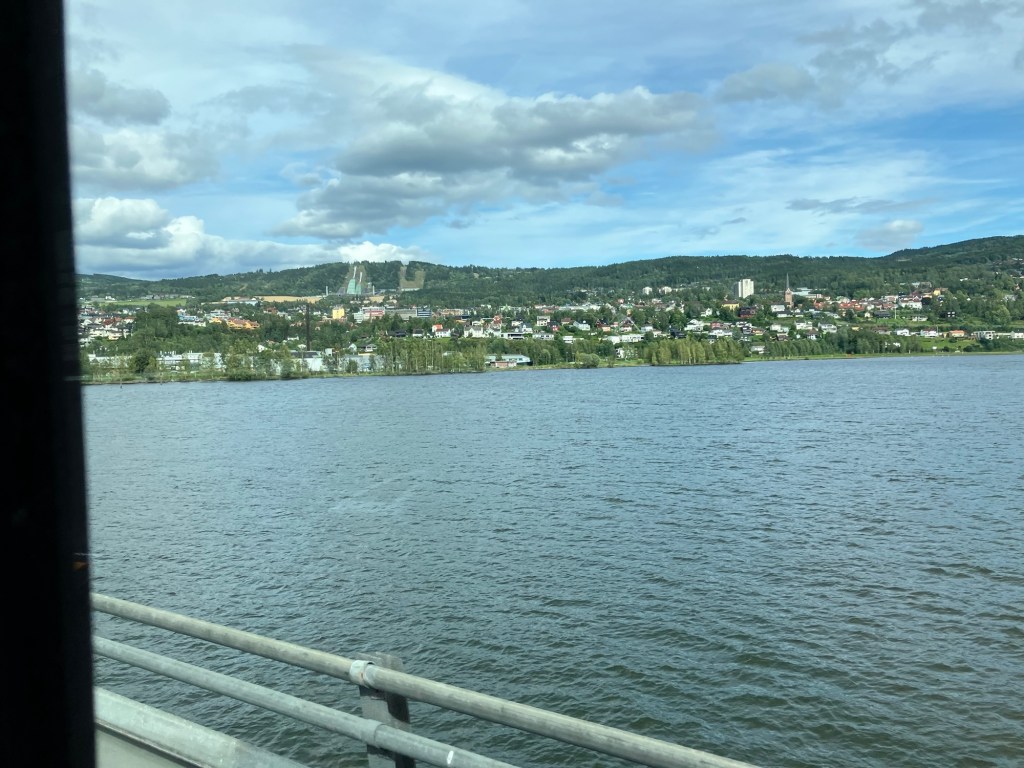 Om ikke lenge kommer vi ned og kjører langs Mjøsa og over broen mot Lillehammer.
