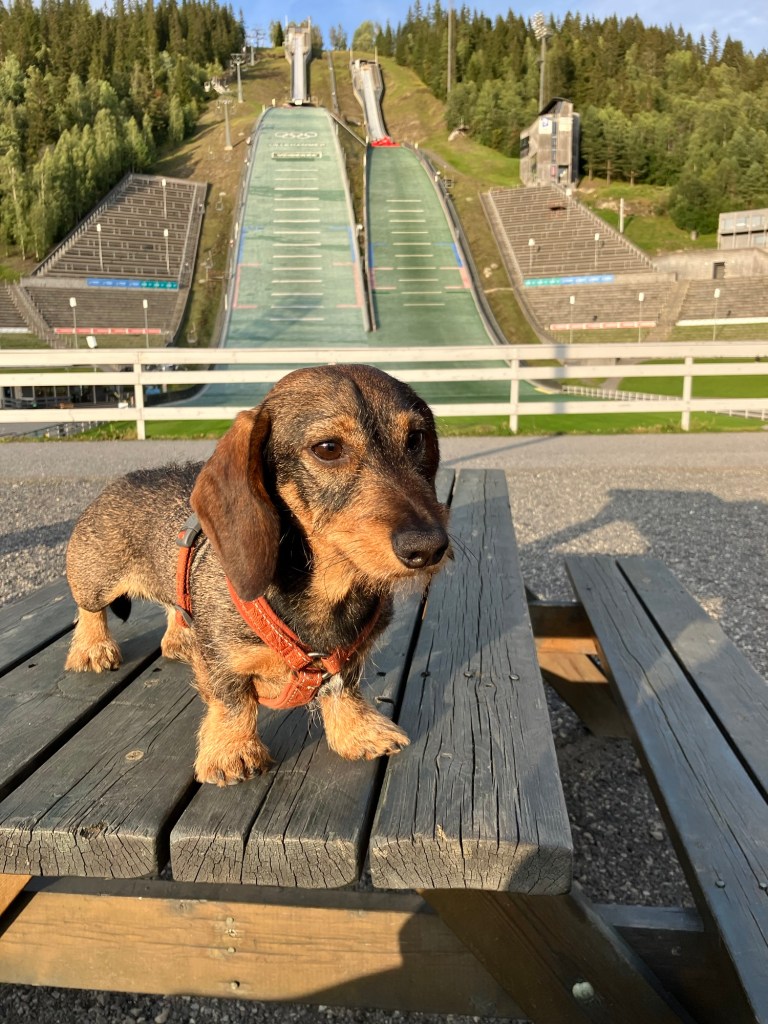 Og det er hit vi skal – til Lysgårdsbakken der OL-ilden ble tent. Her er det en stor parkeringsplass i etasjer oppetter terrenget hvor det er lov å parkere om natten for bobiler. 180kr til Easypark koster fornøyelsen, her er ingen fasiliteter men nydelig utsikt ned mot byen. Her er vi en norsk, en italiensk og ca 10 tyske bobiler. Lokalbefolkningen bruker også området, mye mosjonister og hundetur mennesker så det ble litt livlig av og til.