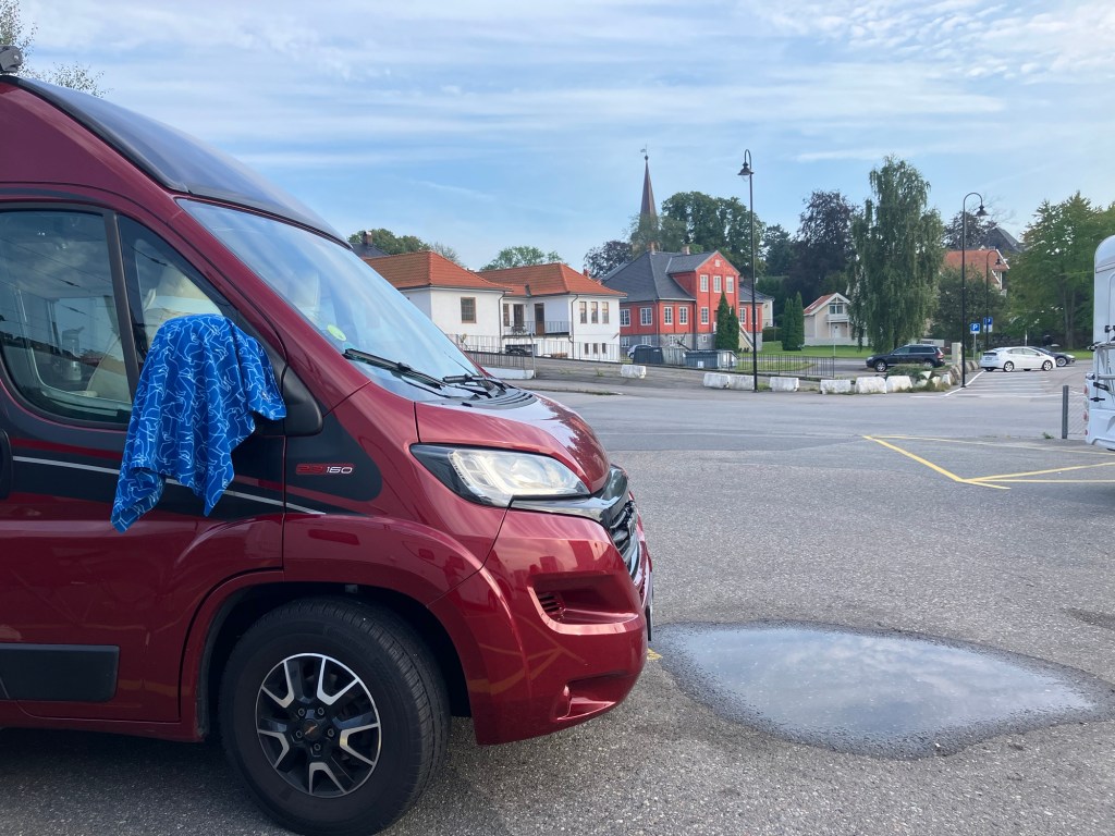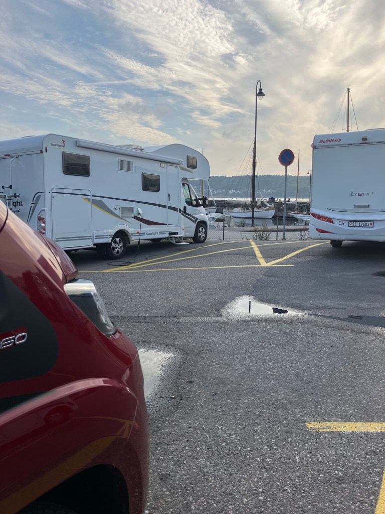Våknet til grå skyer og litt småregn i dag så vi fant ut at det var en passende dag å kjøre en litt lang strekning – vi tok nå sikte på Vestfold. Vi tok en rolig morgen og kom oss ikke avgårde før i tolvtiden.