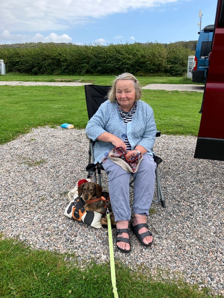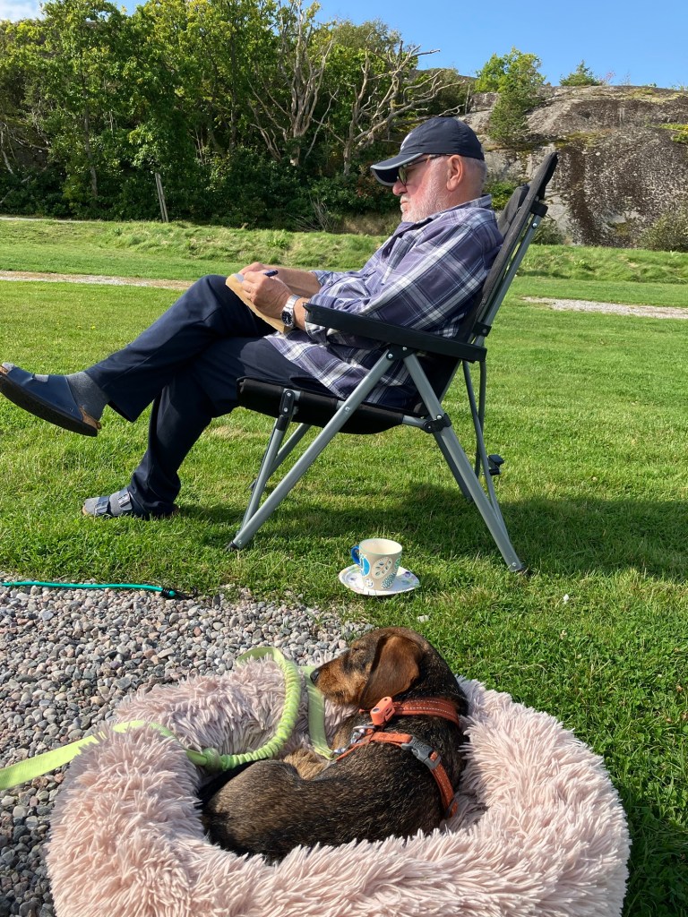 Endelig i dag kunne vi unne oss en «liggedag» som det heter på bobilspråket. Våknet til strålende sol men var plaget av en vind som synes å komme fra alle retninger så det var vanskelig å finne le. Så vi måtte liksom frem med strikkejakken når vi satt i ro.