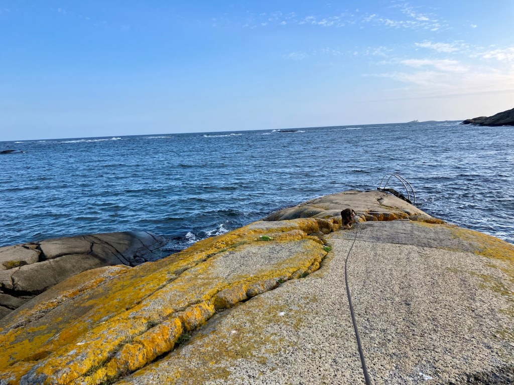 Kyststien mellom Stavern og Helgeroa går forbi campingplassen og om formiddagen gikk Ray og Albert i retning mot Helgeroa og om ettermiddagen gikk Mona og Albert i retning Stavern.