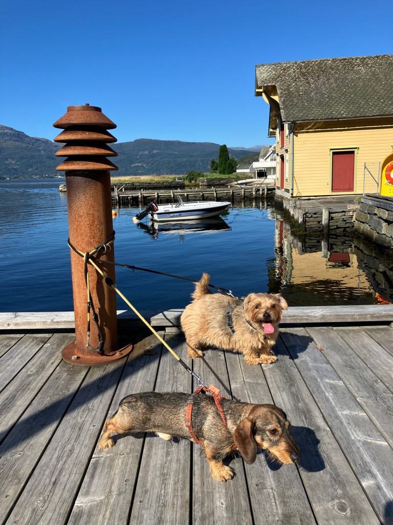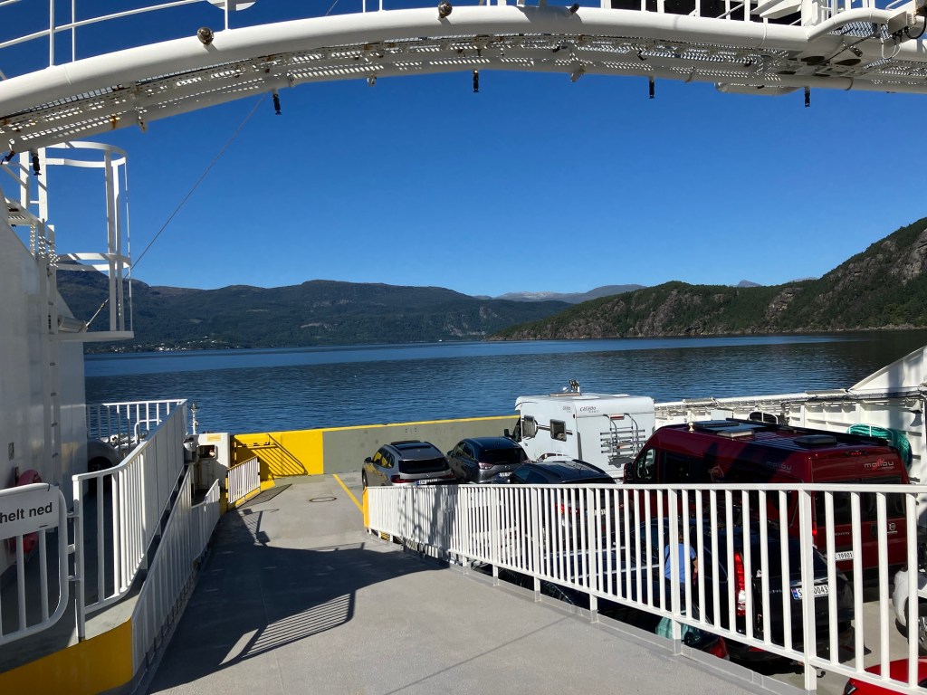 Fint da å komme til solfyllte idylliske Jondal hvor vi fikk tutle litt rundt på kaien og vente på fergen. Den er elektrisk, går hver halvtime og tar 20 minutter over fjorden.