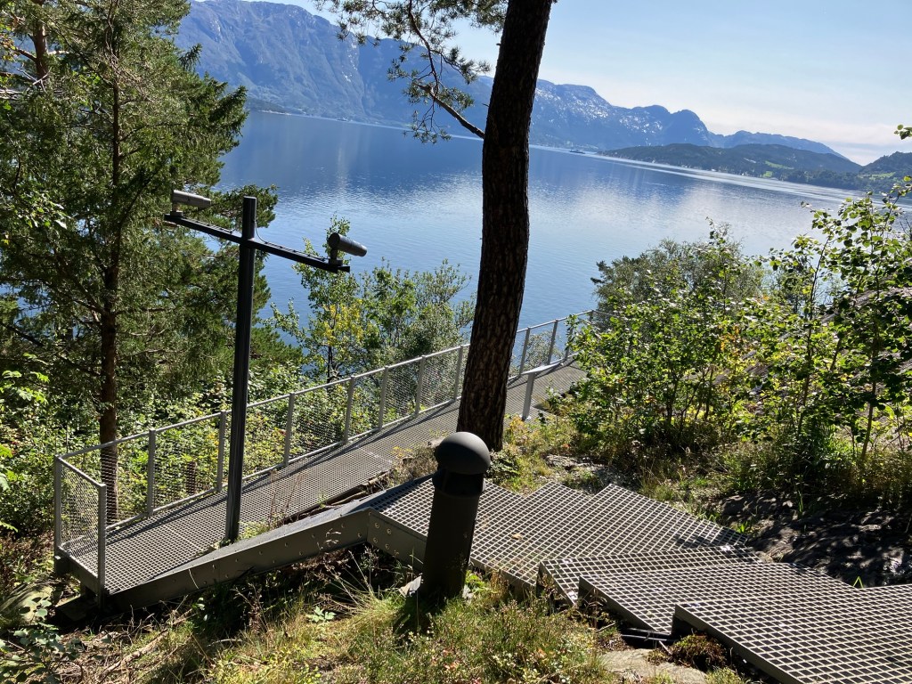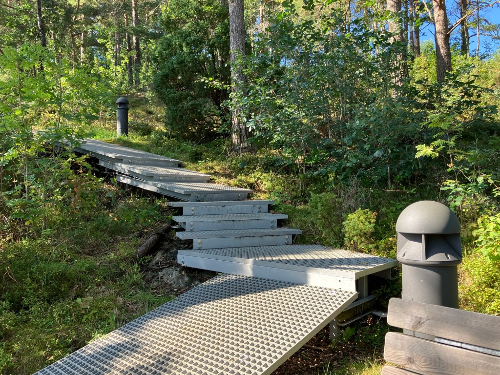 Helleristningene var i et bratt terreng ned mot fjorden og det var anlagt trapper og rister du kunne gå på for å komme ned.