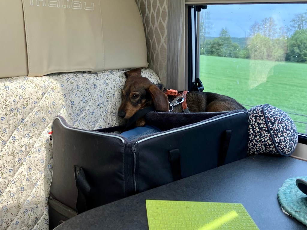 Albert foretrakk til tider å omtrent ligge i vindusposten, men han er jo sikret i sele så det skulle vel være greit.