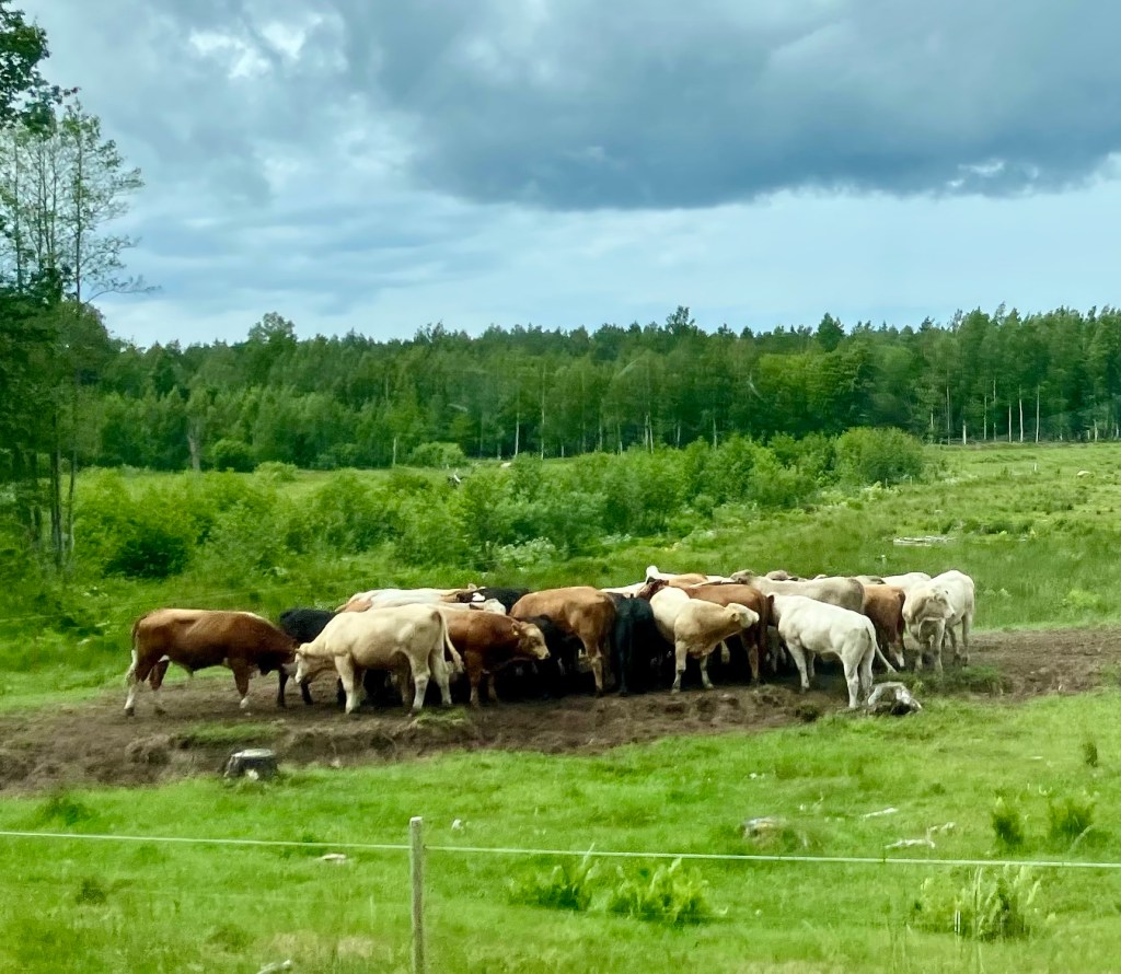 Vi ankommer et nytt fylke – Västergötland – og her er mer åpne landskap. Mye korndyrking men det dukket nå opp noen kyr i ny og ne.
