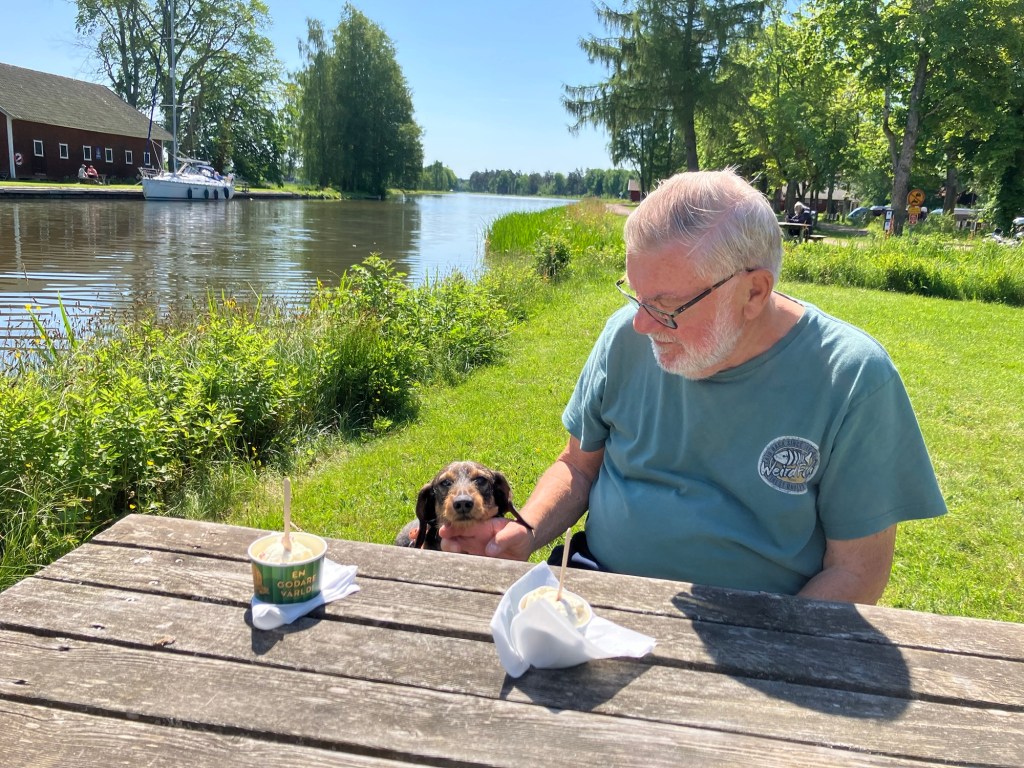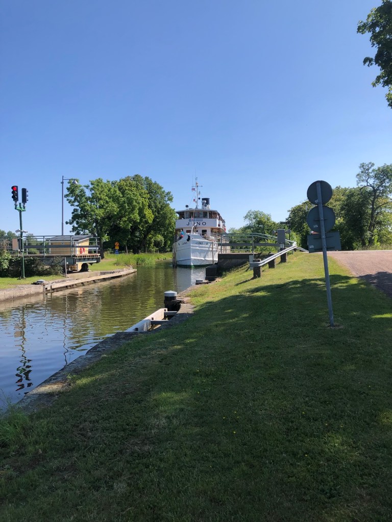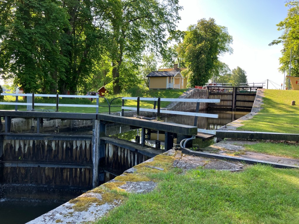 Deilig sommerdag og vi bestemmer oss for å tilbringe formiddagen frem til utsjekking kl. 12 på Hajstorp slusene, ja det er nemlig 2 sluser her helt inntil hverandre.
