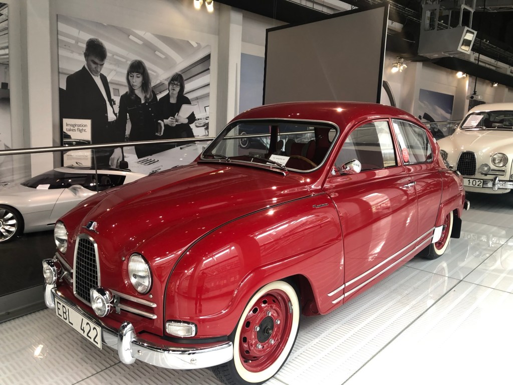 Da vi kom til Trollhättan husket Mona at det var her de laget Saab bilene i sin tid så da ville sjåføren gjøre et stopp og se seg om på museet så han gikk rundt og koste seg der.