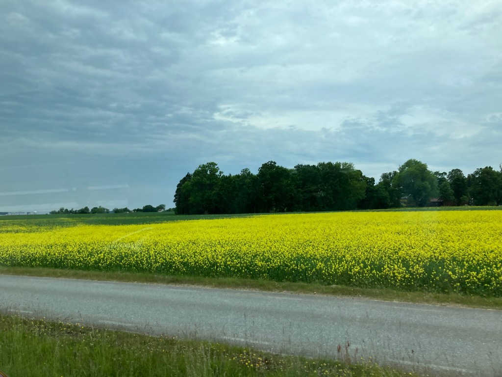 Fine veier men mye veiarbeid. Endelig fikk vi nå se noen blomstrende rapsåkre også, alltid en favoritt.