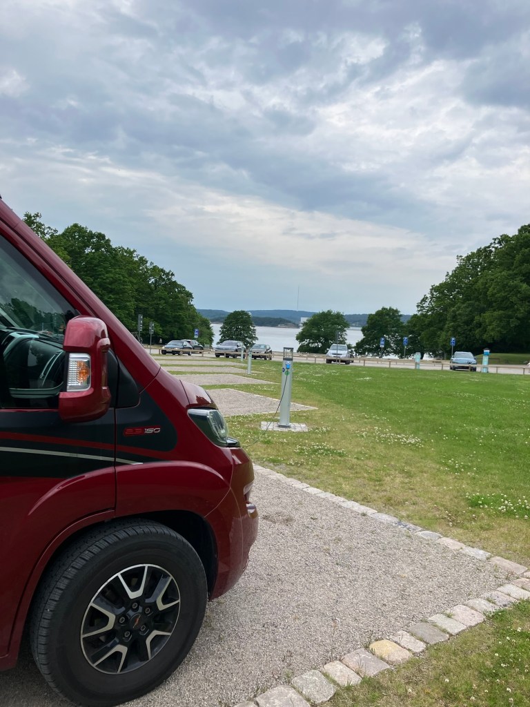 Vi dro så videre til dagens destinasjon Uddevalla hvor hadde booket oss inn på den kommunale stellplassen Bodele som ligger ved en badestrand og friluftsområde i bydelen Gustavsberg.