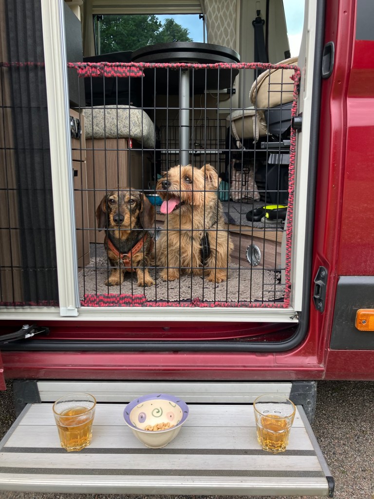 Vi var nå fornøyd med en ankerpils på trappen og en tur med hundene i parken/rugbybanen før det begynte å regne. Så kvelden ble nå slik som hjemme med god mat og Netflix.